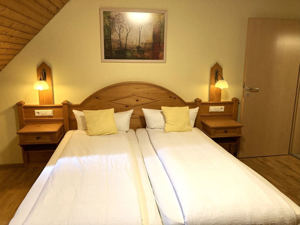 Zweite Etage Gästehaus, mit Balkon. Nach Belegung ein oder zwei Schlafzimmer, jeweils mit Dusche und WC.